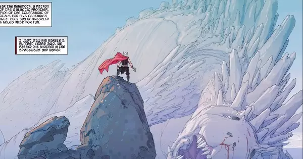 There is a Giant Statue of a God in New Asgard. Can you guess which god it is?